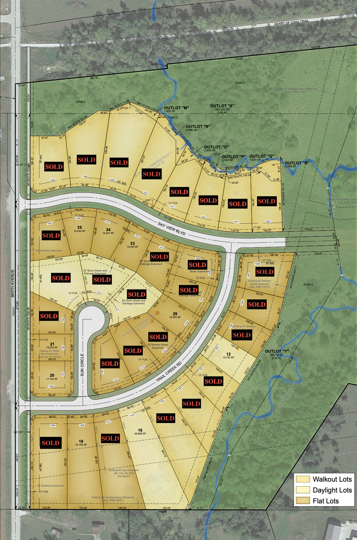 Blue Sky Estates sits on the southeast side of Huxley, right off of 560th Ave. With easy access to Interstate 35, you are able to enjoy small town living while being minutes away from the amenities offered in Ames and the Des Moines Metro. Speaking of amenities, The Heart of Iowa Nature Trail abuts the development to the north for your use and entertainment.