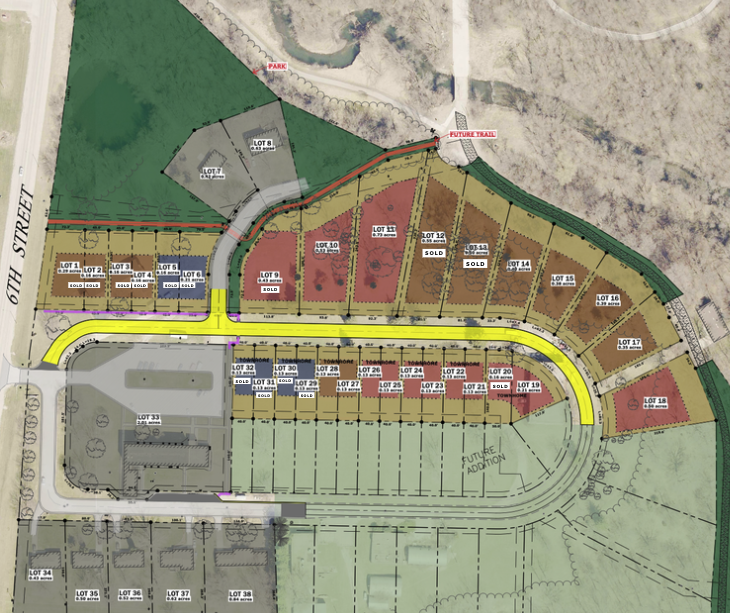 Oak Park Estates features single family lots starting at $75,000 and proposed townhomes starting in the mid $300s.